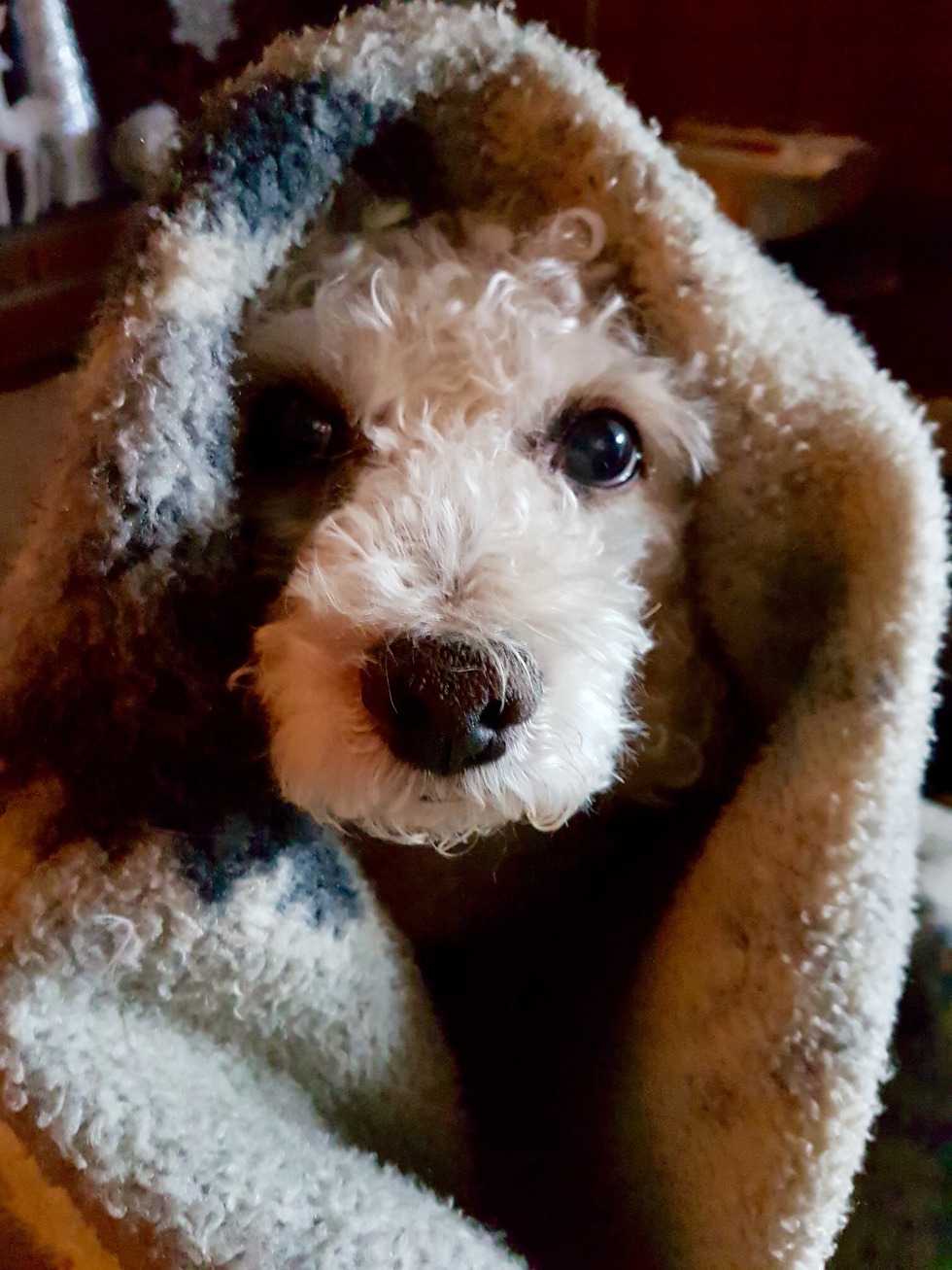 Animal BioThis little puff ball is Anya. She is approx 9 yrs old and is a CavaPoo. She is a sweetheart, laid back and is motivated by treats, treats and more treats. She was recently diagnosed with diabetes and Cushing disease; quite a lot for a little girl! But, like a champ, Anya doesn’t let it stop her from her early morning walks to meet up with her pack (all the neighbourhood dogs). Aside from being the bestest doggie ever, Anya never fails to make everyone she meets just a little bit happier. Her tail looks like a plume feather pen, and it is hilarious to watch as she wanders through the hiking trails with it pointed straight up! She doesn’t have a mean bone in her body. Slowly she is going blind, but she manages quite well and can always sniff out a treat no matter where it is! She has been a comfort to me on more then one occasion and a wonderful listener! The world is a much better place with her in it.