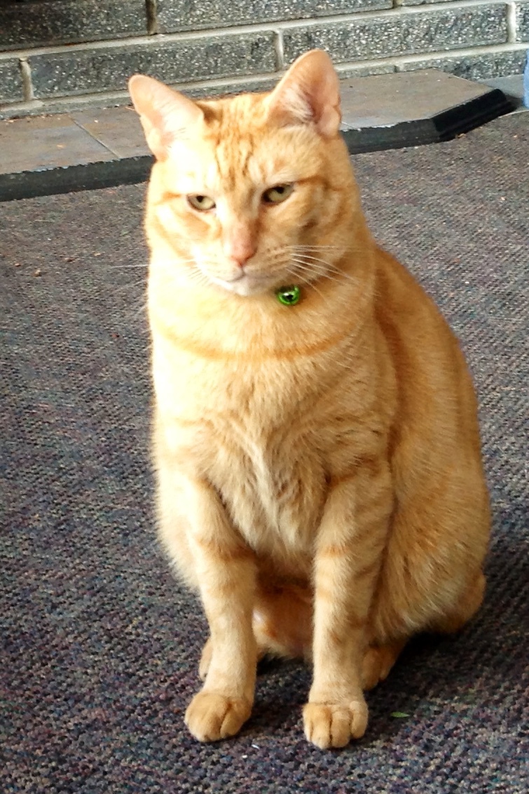 Adopted from SPCA at age 4, he is now 10, he has lion size paws a tiny little tail and a small head on a huge body, he is the biggest lover there is,
