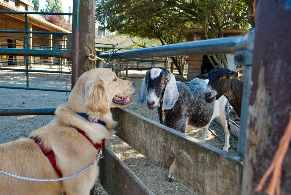 Animal BioNya is a 14 month old Golden Retriever on her journey to becoming a Psychiatric Service Dog. Socialization is key for training any dog, and is especially important for service dogs in training! We can now check goats off of her socialization list!