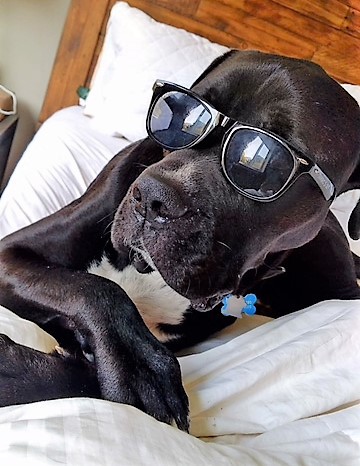 Brutus the mastiff x.... loves snuggles and long sleeps on the couch or bed. Has zero idea what person space is and thinks he is still a good size for a lap dog.