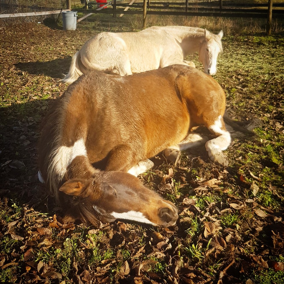 Leo and Breeze are quarter horse paints from Powell River, BC enjoying a snooze in the sunshine :)