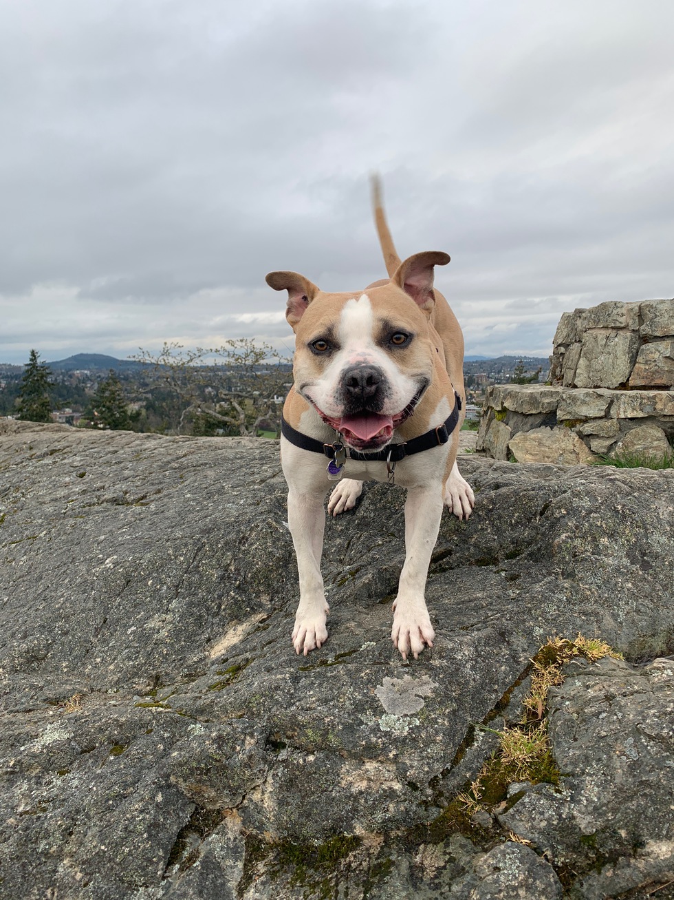 Animal BioWe adopted Bruno from the Victoria Branch SPCA. He is a 4yr old Americans Staffordshire Terrier. Bruno has come alive in nature. He loves hikes, his ball and will do anything for treats. Bruno went through three surgeries before coming into our care and has never looked back. He is fun loving, goofy and patient. Bruno has become a champion for his breed and we feel so lucky to be able to be a part of his world.