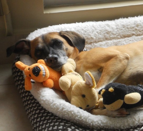Animal BioSadie was a street rescue from Panama. My husband and I brought her and another Panama rescue with us when we moved to Canada. When I found her 10 years ago, she was starving and skeletal. She was about 8 months old and had already had a litter of puppies. Think we've spoiled her?