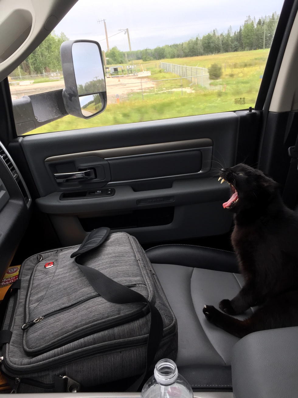 This is Hubert yawning during a road trip across the prairies! Definitely as bored as I was but unfortunately I wasn’t able to catnap as he could!