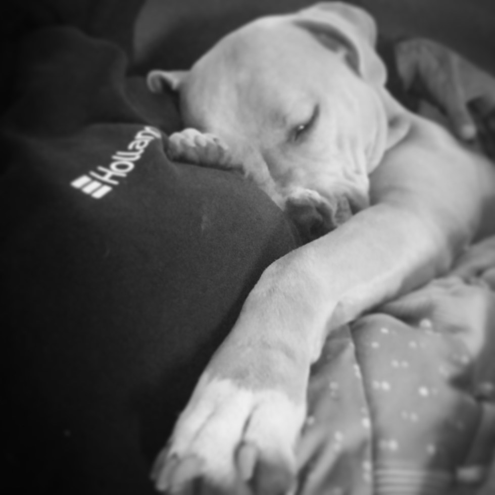 This is nya, she is a 2 year old pitbull terrier. Loves to sleep, love her ball, loves to run... she loves all humans, and animals. Very great spirit, a very happy girl.