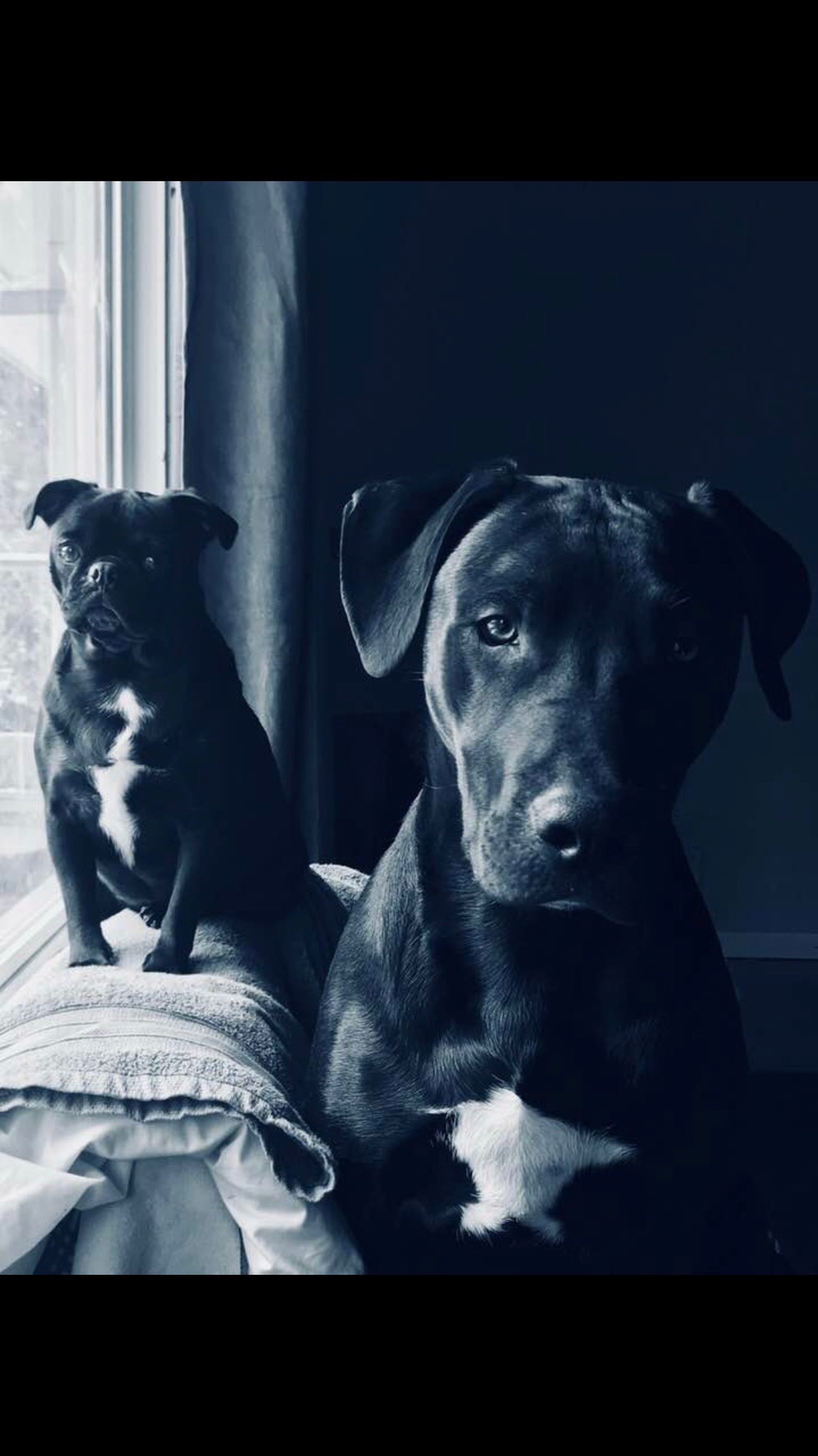 Kane is a handsome, Pit bull who enjoys a wide variety of chew toys! Including the windowsill... 🤦♀️ Penny is a beautiful, outgoing, pug weighing in at 21 pounds (I think it’s time to lay off the cat food).