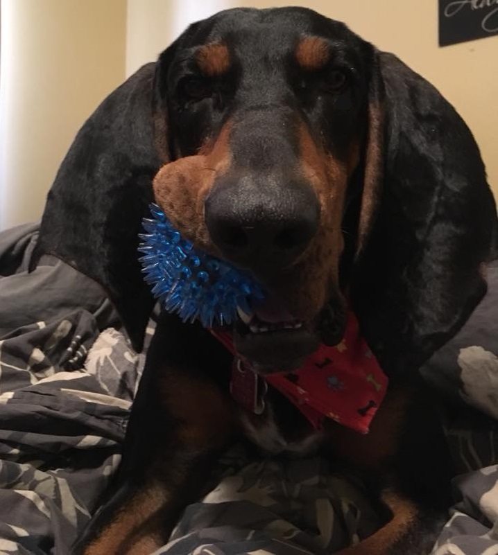 Animal BioBeerus was abandoned by hunters because he was not a good hunter. Some neighbours took him in but ultimately ended up bringing him to the local SPCA severely underweight. He is missing part of his left ear due to the hunting pack fighting with him. He has been with us now for 2 years and his very goofy and loving.