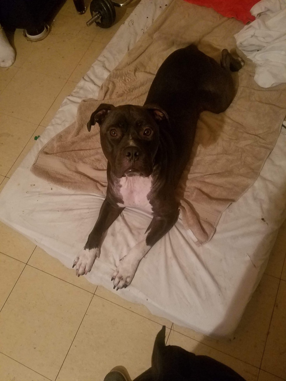 meet cujo he’s almost 3 years old king massif pit bull he loves everyone and other living things even mice lol I’m so proud of my boy