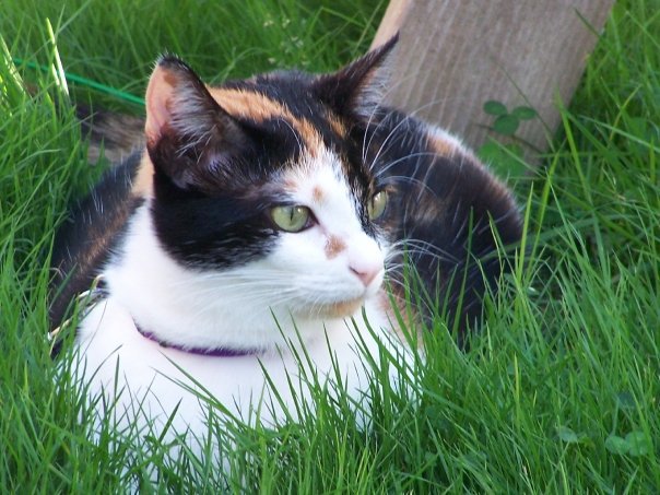 Animal BioChicklet was a beautiful Calico cat that we adopted at the SPCA in Port Alberni. Sadly she passed away about four years ago at the age of ten years old. She thought she was a dog and would fetch a small ball and bring it back to you. Chicklet loved water and would even swim in our cooled off hot tub in the summers. She also loved going for walks on her leash around the neighbourhood. People that saw us would take a second look realizing it was a cat and not a dog. Chicklet had a great personality and would always greet us at the end of our working day by running up to us for a snuggle.