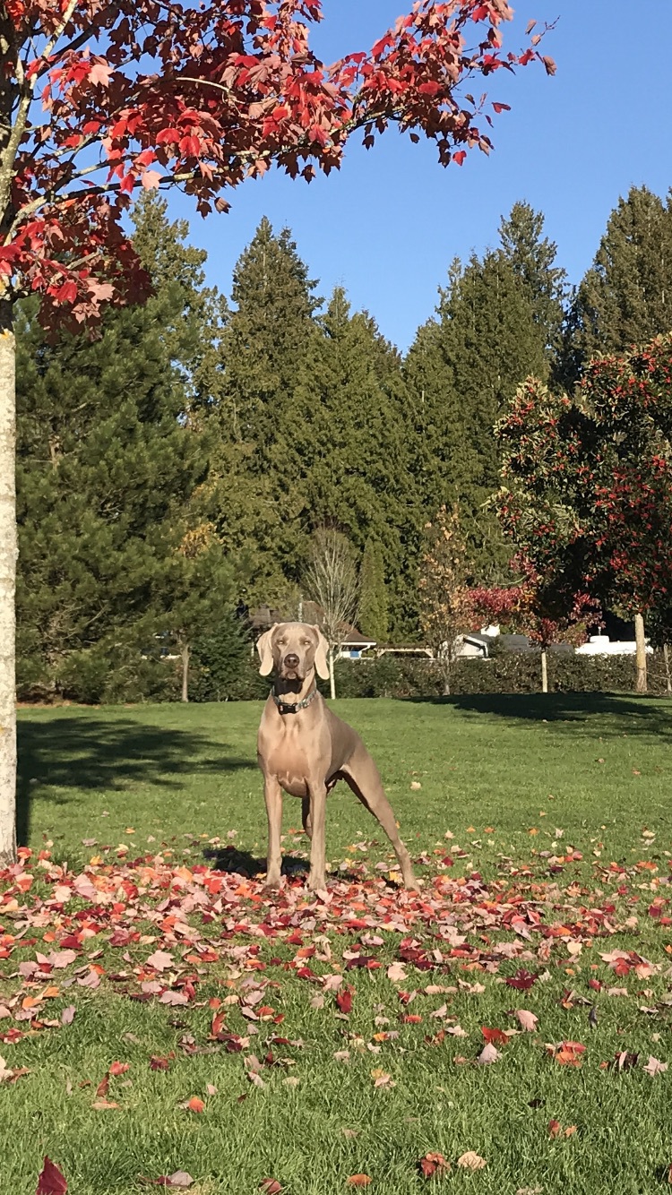 Animal BioGeorge is your typical Weimaraner. Two years old and gangly as all get out, he’s nevertheless a perfectly typical ‘Silver Ghost’ as he virtually disappears around gravel, dirt, sand, asphalt, tree trunks, bark mulch... Still, it’s easy to forget his brother has earned the ‘Best of Winners’ title in every dog show in North America for their whole lifetime, when George is a real life Goofy! Here he is posing awkwardly in the fiery autumn setting of Uplands Dog Park.