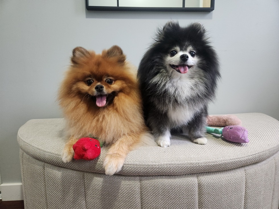 Bella (black and white) is a 12 yr old pom who just might be the sassiest little thing you'll ever meet and is 100% a princess. Millie (tan) is a 5 yr old pom who is the complete opposite she's my wild child who loves to get dirty. Both will do anything for food and always wait for their grandpawrents to give them apple slices. They're the best of friends and sisters. They also like to think they're pitbulls and could fight anyone off lol