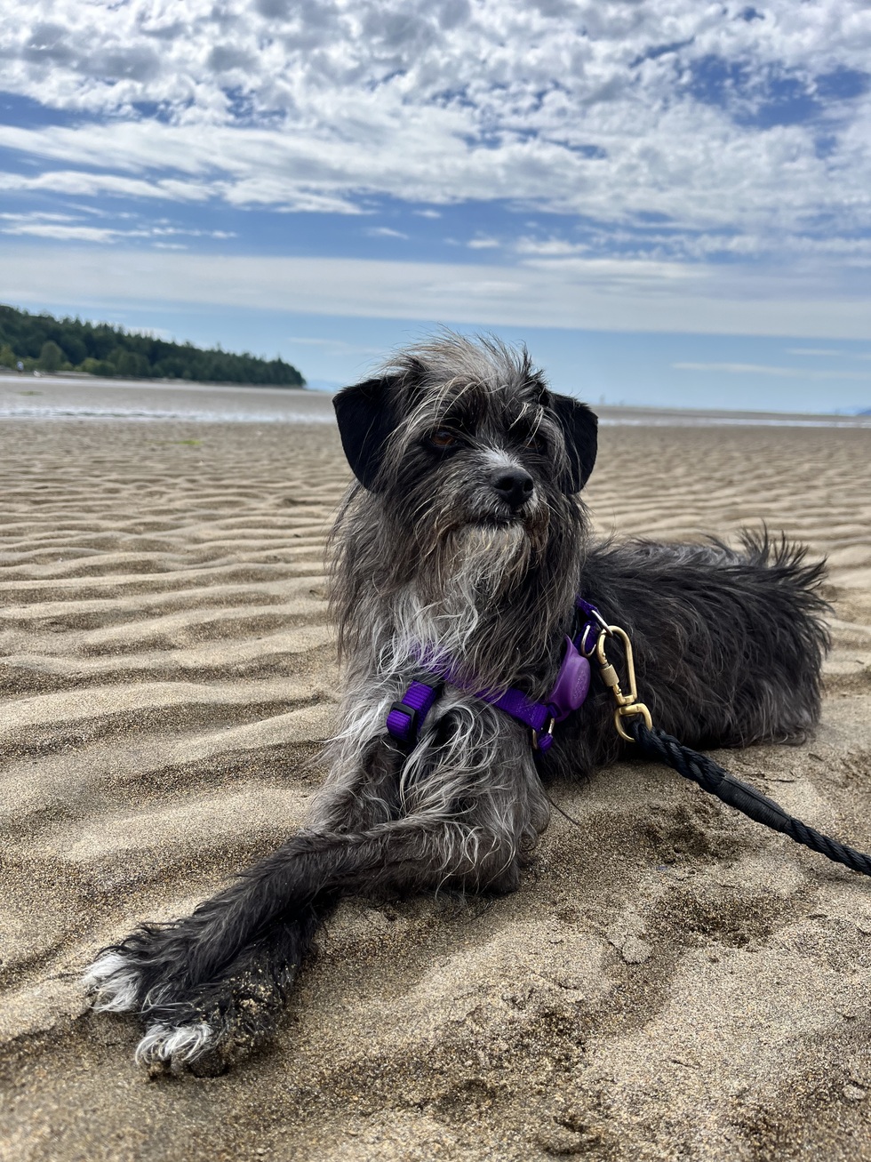 Chet is a sweet little long-legged clown who loves traversing the British Columbia landscape, going down slides, and having hard naps in the hull of a gently rocking kayak. He was rescued from a case of neglect in the California desert and now calls the coast his home. You can often see him assisting firetrucks with his own siren and chasing sticks in low tide. He’s a charming strange beloved little man.