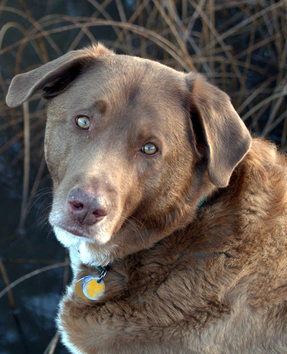 Jenny is the offspring of a Great Pyrenees mum and a wayward Labrador dad . Weighing in at 95 lbs, well suited for her role as a loyal and devoted life stock guardian dog and much beloved family pet.