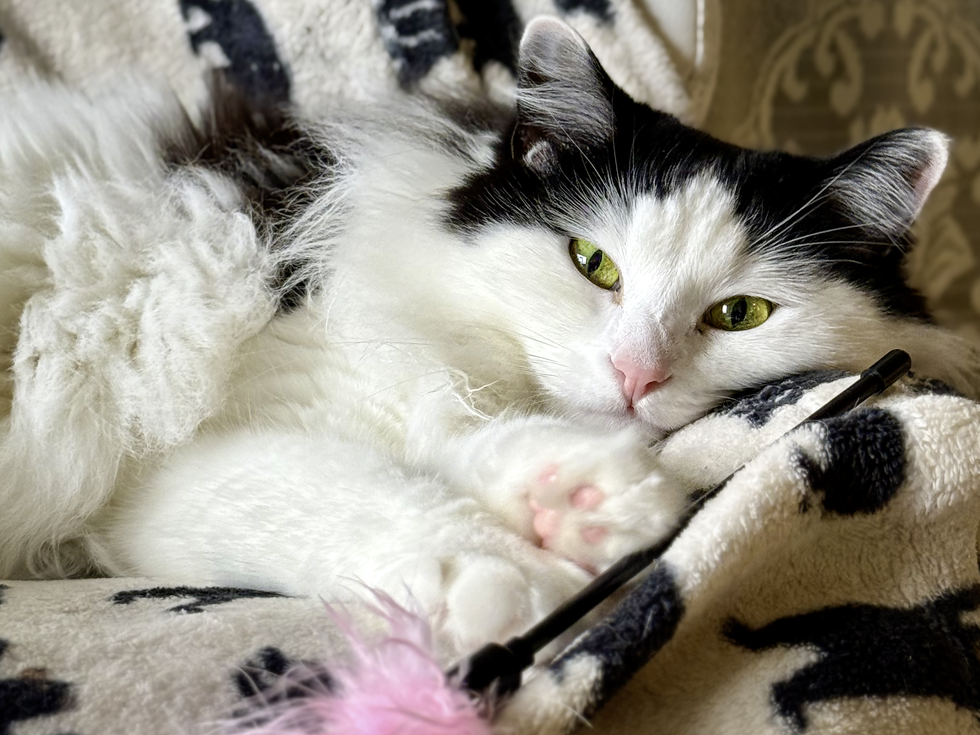 Animal BioCoco has just recently turned two years old; her first half of life was lived in the wild on a property with a cat colony. Local charities and organizations have been working hard to trap, socialize and rehome her many siblings and feline family members. She's believed to have been rough-handled as a kitten, so is learning that hands can be gentle and loving. She's excited to live the rest of her life dry, warm, fed, and most importantly of all, loved.