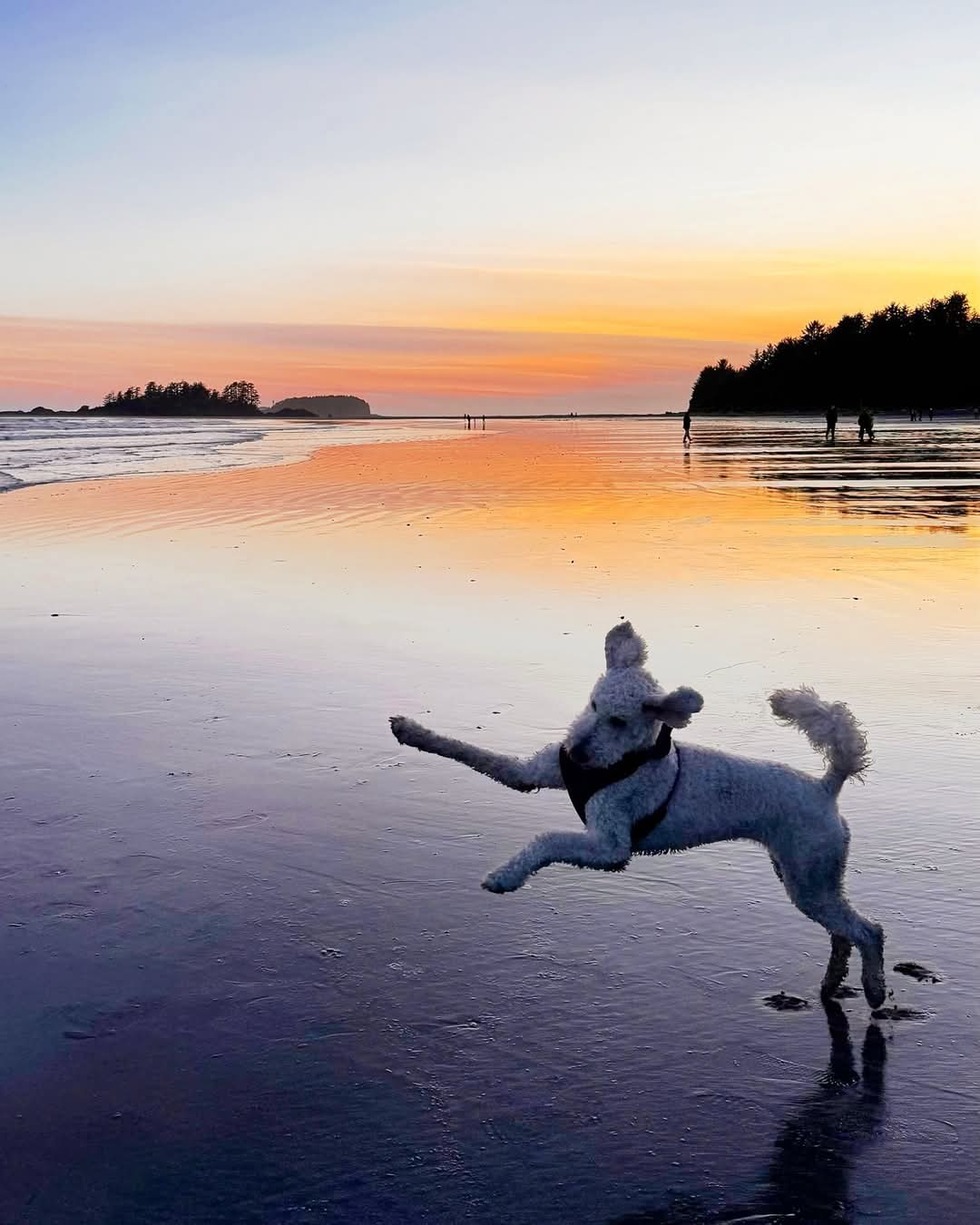 Animal BioMaggie is a 3 year old Goldendoodle who loves adventure and meeting new people! She is the sweetest girl who will make it known if she's not getting enough attention. This photo is of her in one of her places on earth: the beaches of Tofino, BC.