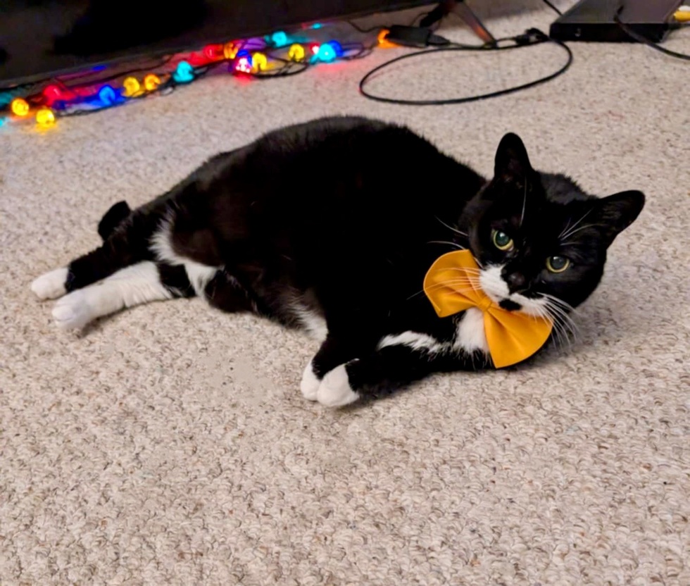 Described as “never a lap cat” and “a bit of a challenge”, she has been on my lap since day one and only ever challenges me for extra food. She is now 15 years old and still sassy, loving, and comforting. She can sense when a human feels troubled and will sleep on their chest or right by their head. She watches me bake and cook, and follows me around the house. Jessie also loves Jessie (Nana), and when she babysits they spend the weekend napping together and snacking.