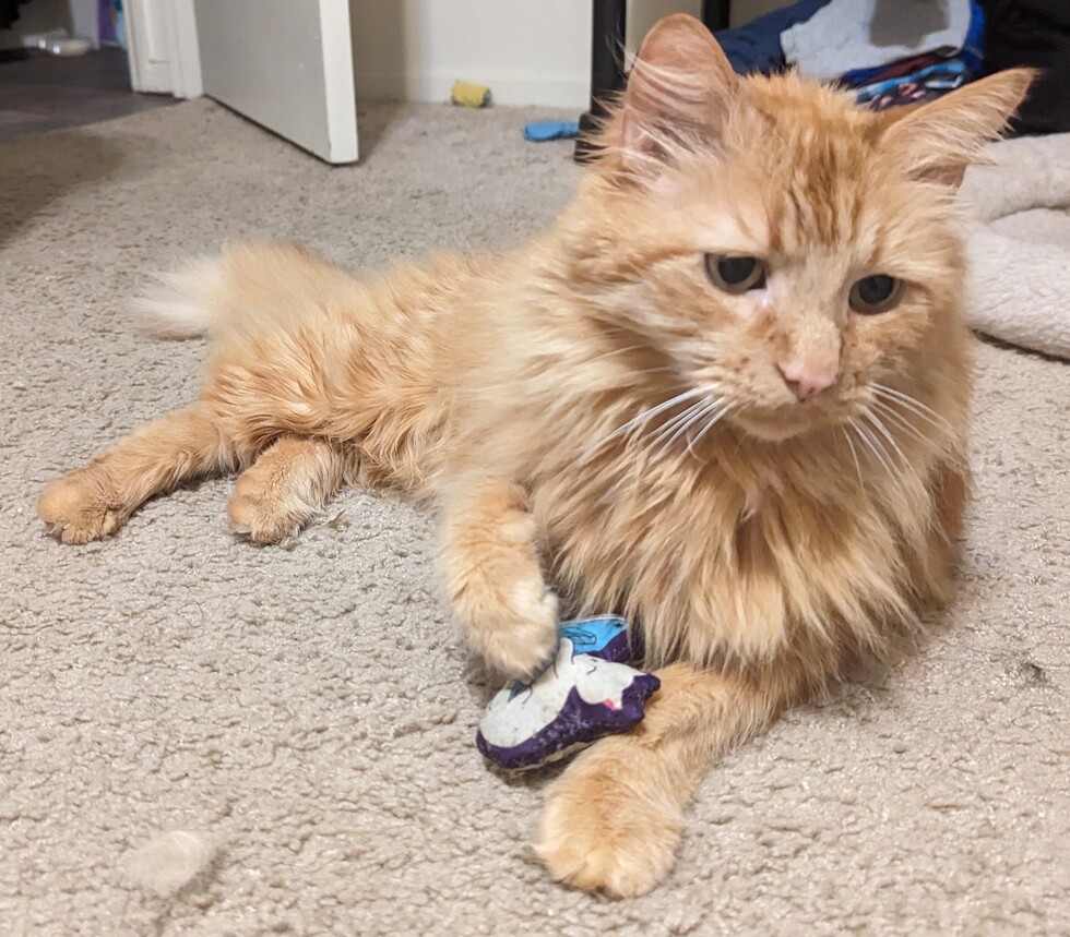 Tell us about your pet and why they should win!He may look worried, but don't let that fool you. He's famous for his RFF (resting forlorn face), and has used it to convince dozens of unsuspecting humans for pets, cuddles, and best of all, food! He found his way into someone's backyard in Pittsburgh in 2016, and through some friends, found his way into our home. He's shy from getting chased away from trash cans over the years, but once he knows you're just interested in love, he'll reciprocate in spades. He's the terror of all his toys, especially anything with catnip or feathers, and is the best jumper in the known universe. If he wins, he'll still look sad, but he knows he's already won us forever.