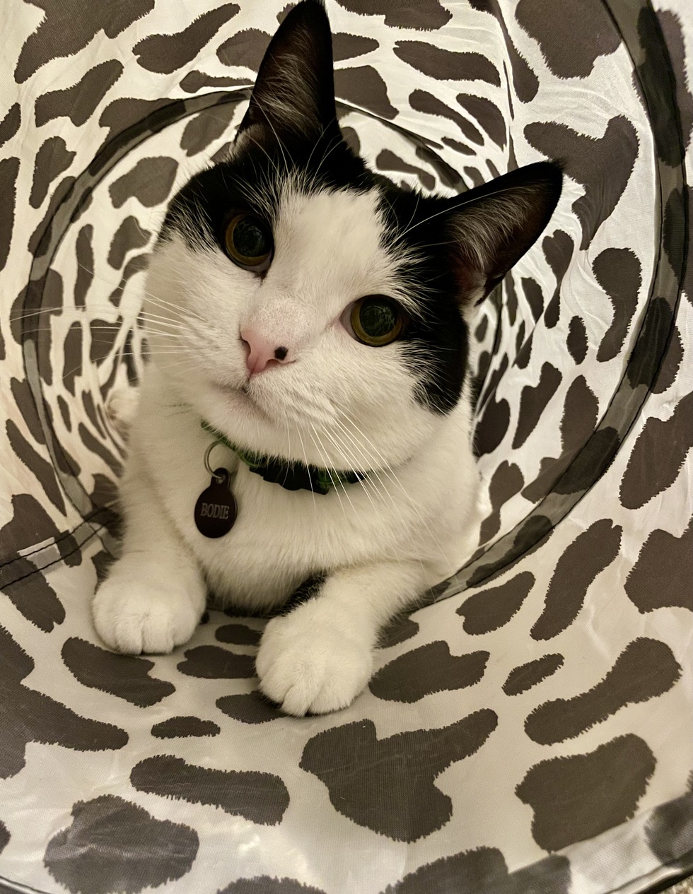 When I read his story, I just knew he was meant to come home with me. Now my three-legged kitty is living his best life, zooming through his tunnel, soaking up couch snuggles, and playing with his sister Stella.