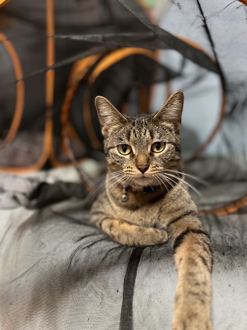 Kai is a 3-year-old tabby with a big appetite and an even bigger personality. He’s a pro at giving paw 🐾 when treats are around and has the cutest habit of making little bird sounds. When he’s not busy snacking or snoozing, you’ll find him lounging in front of the TV, keeping you company in the most adorable way. Life with Kai is always full of cozy naps, silly quirks, and plenty of love.