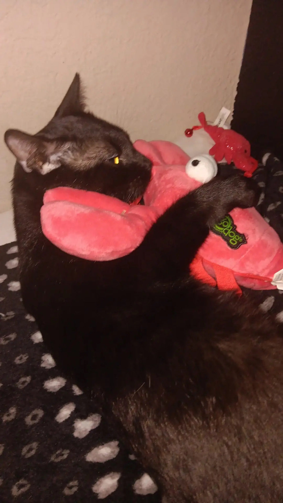 Bastion a silly boy he loves his treats and his favorite toy is his lobster. He sometimes can be a drama queen, but we still all have to love him and he loves to love boom.
