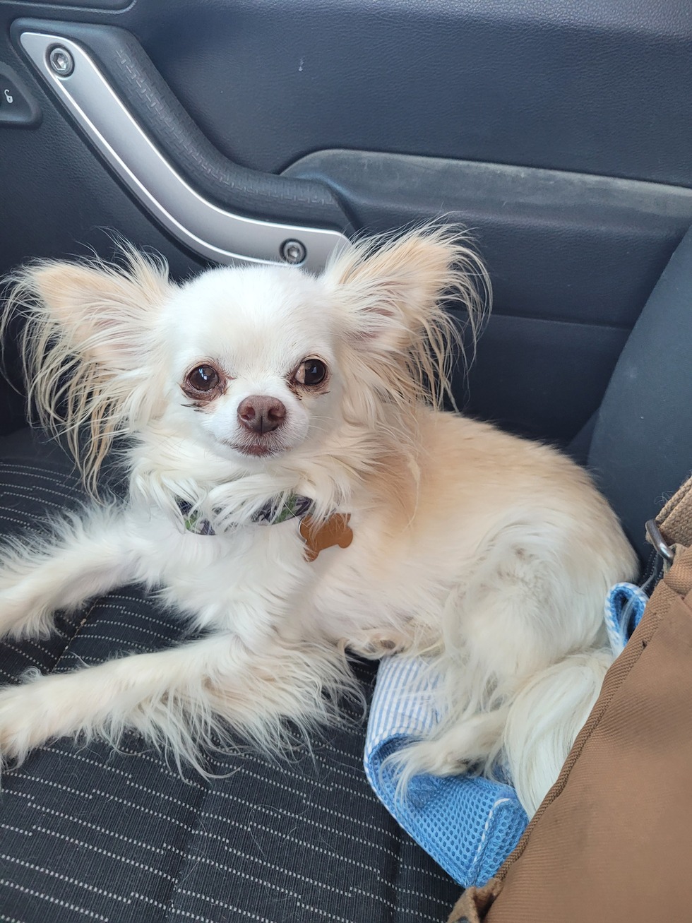 Jose was owner surrendered in New Mexico to FFTF rescue. Jose was originally acquired from a Japanese pet store and he is a magical fluffer. Jose is the librarian of the pack and make sure everyone keeps it down or he chastises them with chirpy barks.