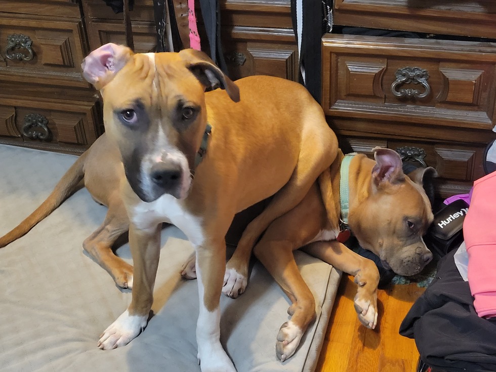 Bug, or as we like to call her Buggie Boo, was rescued from a Tractor Supply parking lot along with her sister. She was emaciated and very scared, and you could tell she had been treated horribly. Now she has made leaps and bounds and also recovered from having emergency surgery for an obstruction. She is an amazing foster dog, sitting around (and sitting on her foster parents’ dog) waiting to find her forever home! The FFTF foster mom who originally saved her entered her in the calendar contest. Bug has now been adopted and her new parents are so grateful to have her!