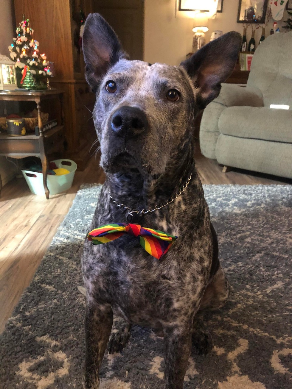 Cane is a 4 year old Blue Heeler mix and was adopted from the North Texas Humane Society shelter on Christmas eve 2020 by his mom, dad, and big sister. They called him Candy Cane, but just Cane for short. Before he found his forever home he was surrendered to the shelter by his original owner who was not very nice to him. He was mistreated and under-socialized so he had a lot of fear and anxiety. He was adopted by a family and then brought back because of his anxiety. He was a scared pup that just needed to decompress and know that not all people are mean. He got his Christmas wish when his family showed up to the shelter to look at another dog. He sat in his kennel scared and lonely. When his soon to be new dad saw him, he instantly knew that this boy needed a new family that could show him what love really is and he could learn to trust. Cane now lives in Colorado Springs with his family and even has a canine brother, Otis who is also a shelter pup. Cane loves his family so much and is the best boy and very loyal. Cane loves fluffy and squeaky toys, belly and ear rubs, but most of all tennis balls. You will often find him playing fetch in the backyard with his mom.