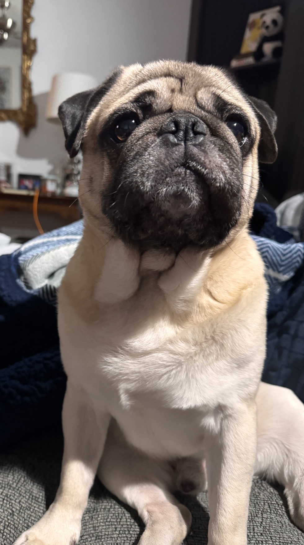 About meBenmont was rescued with Bluegrass Pug Rescue. He absolutely loves watching tv! Currently, he is very invested in the Bridgerton series on Netflix (he has beef with the horses on screen). When he is not watching tv, he is protecting his elderly pug sisters or snoring so loudly our neighbors must think we are sawing logs all night long.