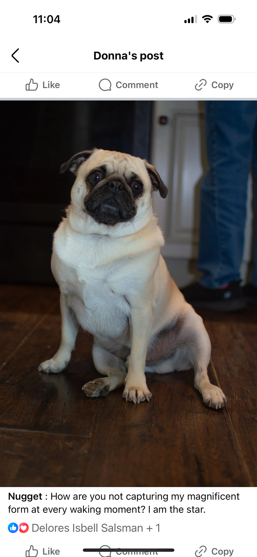 About meNugget loves to be the star of all of our family events. He especially loves when the lady with the big camera comes and takes his photo. He expects she should have a camera every time she comes and he follows her around and poses for her. No treats needed❤️