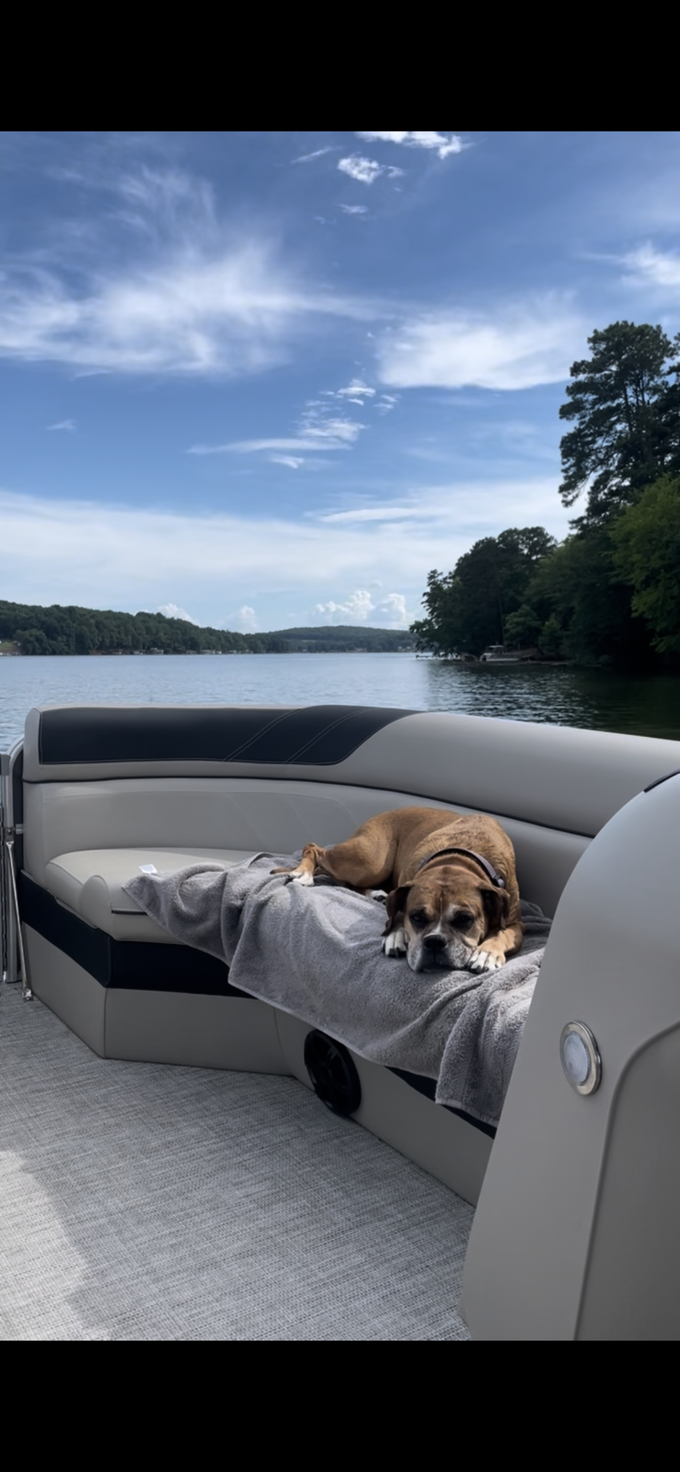 Fancy was the sweetest little boxer ever! She loved boat rides, swimming with her vest on and running free between the trees in the woods!  She had a hard upbringing but the end of her life was full of love, fun, cuddles, and yummy treats!  We miss her every day!