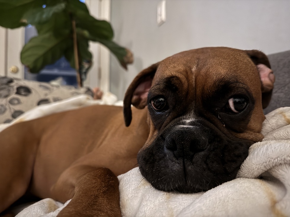 Kona was adopted this past spring from BRBR. She had an amazing foster mom and found her forever family with us. This chaos gremlin is known for her tornado spins and body bumps. When she hits her limit she loves to snuggle up… right on top of you.