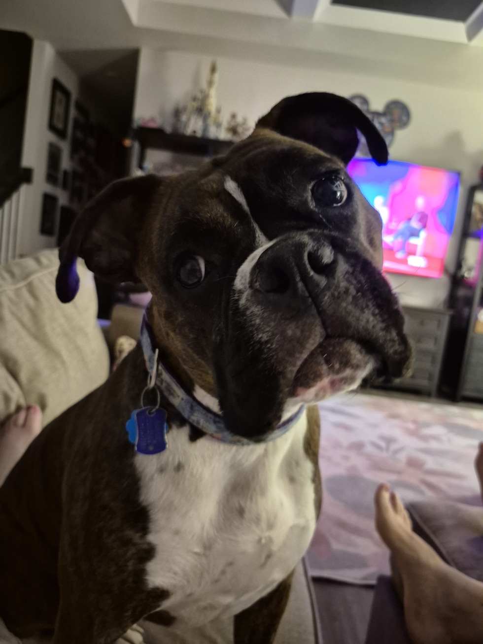 Grace came to us as a foster in May 2024 and she never left! Originally Emma, when Grace came sliding down the stairs because at 18 months old she didn't know what stairs were, we knew we needed to change her name to Grace(ful)!