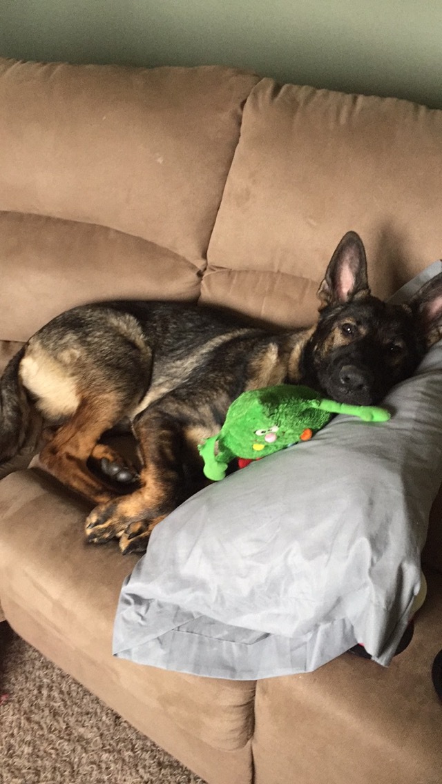Your Pet's Story or BioGunner is a one and a half year old German Shepherd. My fiancé and I have had him since we was a tiny 8 week old puppy. He has always loved to sleep with toys and even slept in a crib with them as a little puppy. We smile every time we look at this picture of our sweet baby boy and hope he makes you smile as well 😊