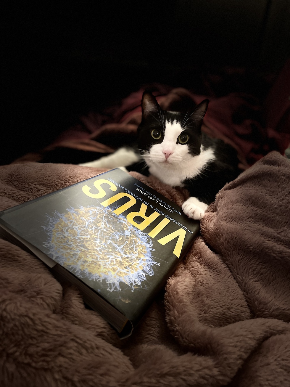 Pierre is 2 years old . He was rescued by PAWS of Norwalk, where I adopted him. He was very distrustful initially, but now he loves human attention and will roll over for belly rubs as soon as someone sits down. Pierre enjoys watching bird and squirrel TV out the windows and chasing catnip fish around the apartment. For such a little guy he has a powerful meow that he can sustain like an opera singer! One of his favorite places to sleep is in my basket of clean socks. If his humans are working on anything, he must be part of it and will sit on your computer keyboard, papers, and jigsaw puzzles in progress.