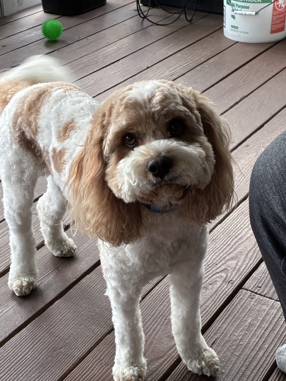 Rusty is a Cavapoo who just turned 3 years old. He is sweet and gentle and loves all dogs and people. He is quite the lap dog and isn’t always fussy about whose lap he is on. He brings so much joy to our family!