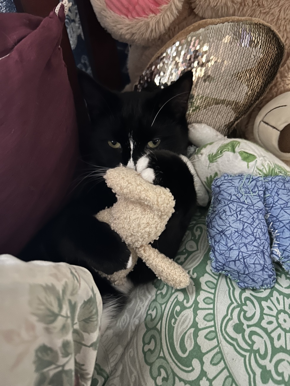 This is Luna, she is two! She loves to snuggle especially stuffies 💕