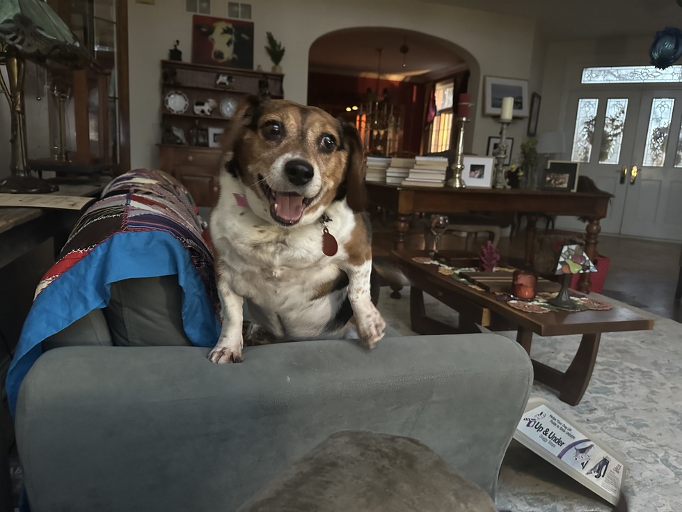midget was a rescue from a very large puppy mill in western Missouri. she blossomed into a loving, gentle soul who eventually trusted the love that was betstowed upon her from our family. always welcoming a belly rub and a treat, she brings love to our home every minute of every day. she epitomizes the phrase "life is better with a beagle!"