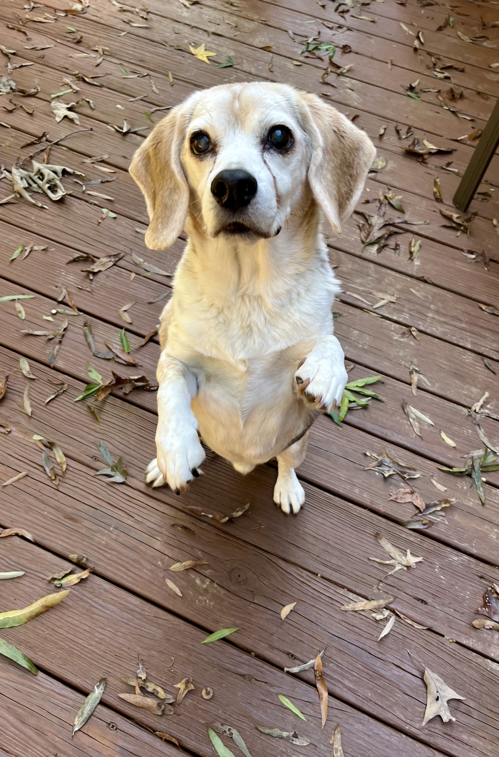 Watson will be 17 in October, he is a BREW beagle adopted in 2010. He is the best boy, he is all about the food and treats as you can see in his begging photo here. Watson only complains when his dinner is late.