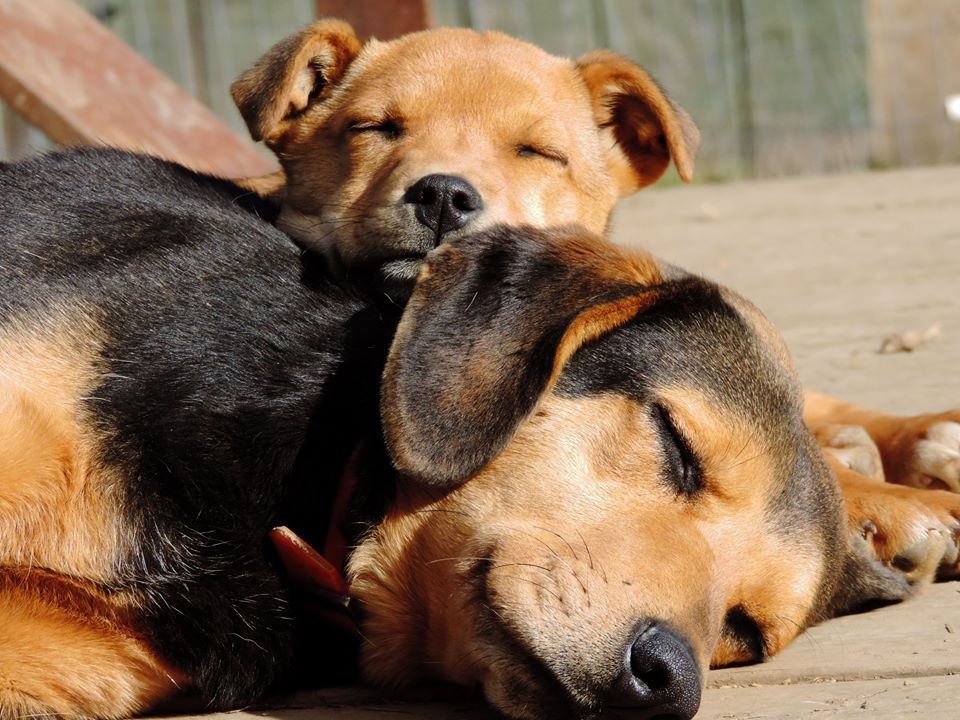 Rescue dogs loving each other