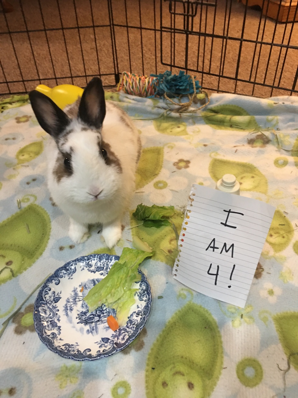 Hopper loves a party and was happy to celebrate his 4th birthday!! Carrotinis were available for all!