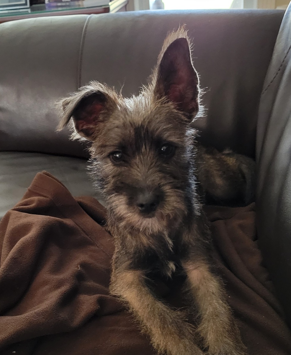 We adopted Cinder from Camo in October 2022. She is full of energy! She loves her toys, taking walks, and playing in the yard. She always wants to be wherever we are for snuggles and belly rubs. We are so thankful for her!