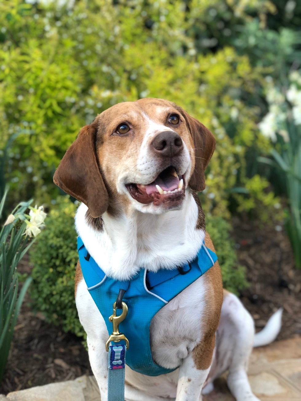 Tank-A-Roo! Tank was our first dog and the dog that had us thinking all hounds were the best hounds and we needed more! Tank is the strong steady boy that holds the pack together! He loves a good treat or 2, a good snuggle, a squirrel chase and then another treat!