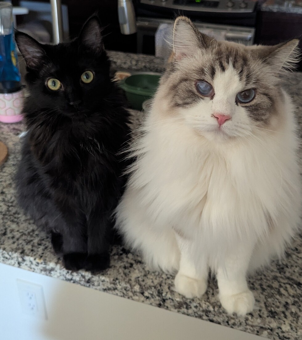 Prosciutto and Cheese are two equally loveable but opposite personalities! Prosciutto is rather shy to new people but never shies away from an opportunity to snuggle with her family. Cheese loves strangers so much that she tries to go home with visitors and can't help but love her family from far atop the cabinets. Both kitties have big hearts, big personality, and can't help but make themselves at home one the kitchen counter.