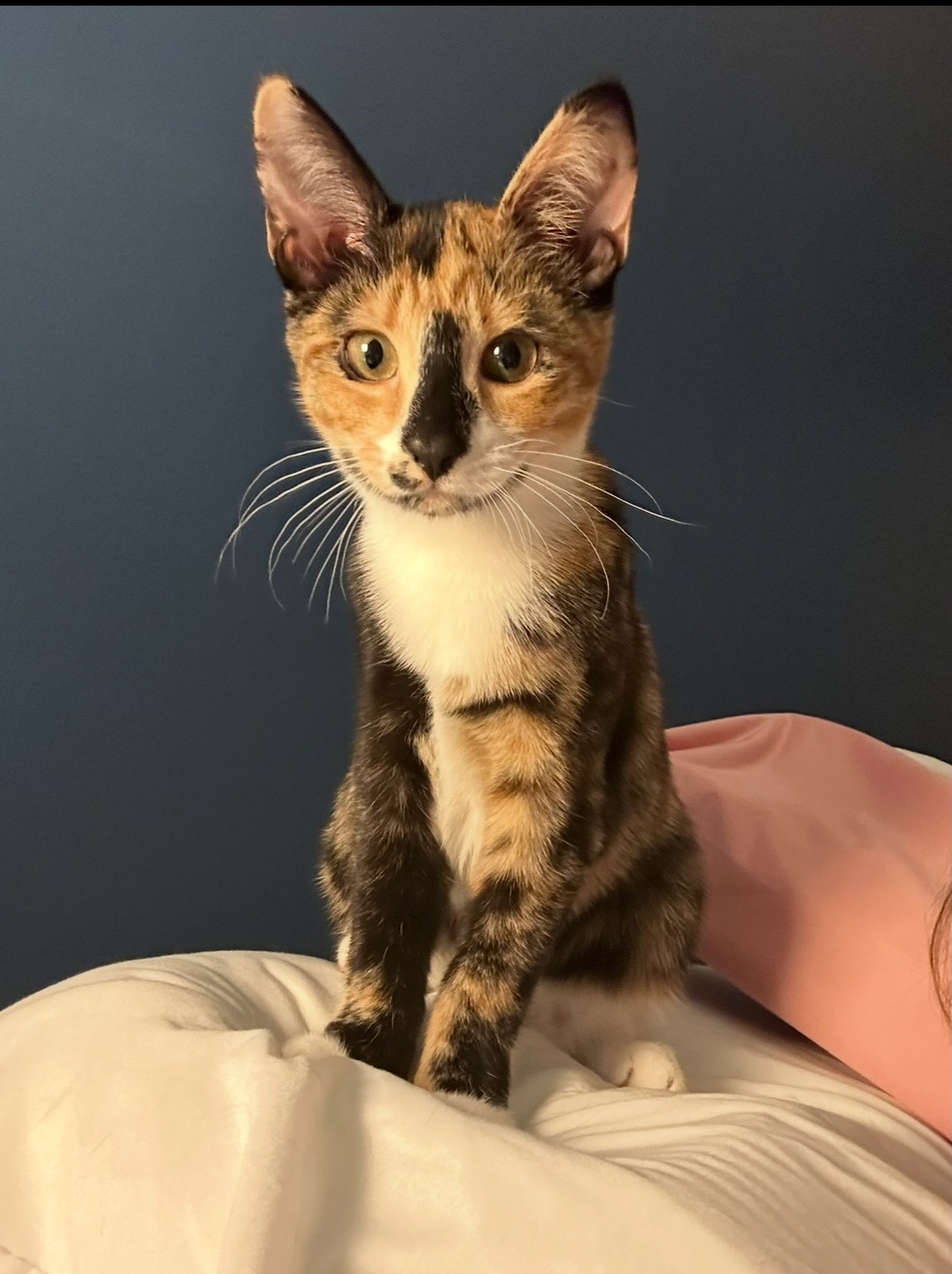 Bibi is our wild child. She loves to run and jump and is a wonderful playmate to her older "sister" Muse. It's so funny to hear them thundering up and down the stairs chasing each other. They were both adopted from CASPCA. They bring us so much joy. Thank you for all you do!