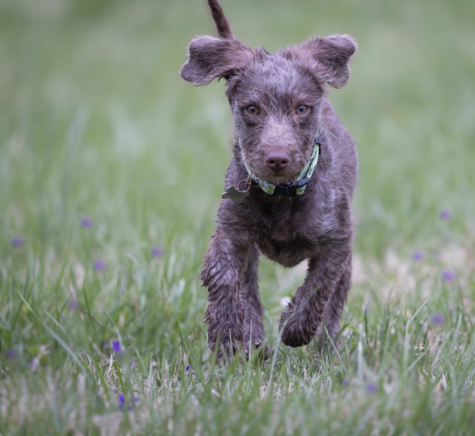 Wren was found emaciated and hairless from mange as a puppy, but with the love and hard work of Petty Pawz Rescue, she rebounded and was able to be adopted by us! Now she’s thriving and adores swimming with her canine sister, Tessa, riding out with the horses and being a very cool farm dog. Did I mention she hogs the bed every night as well? We could not love this fuzzy puppy any more.