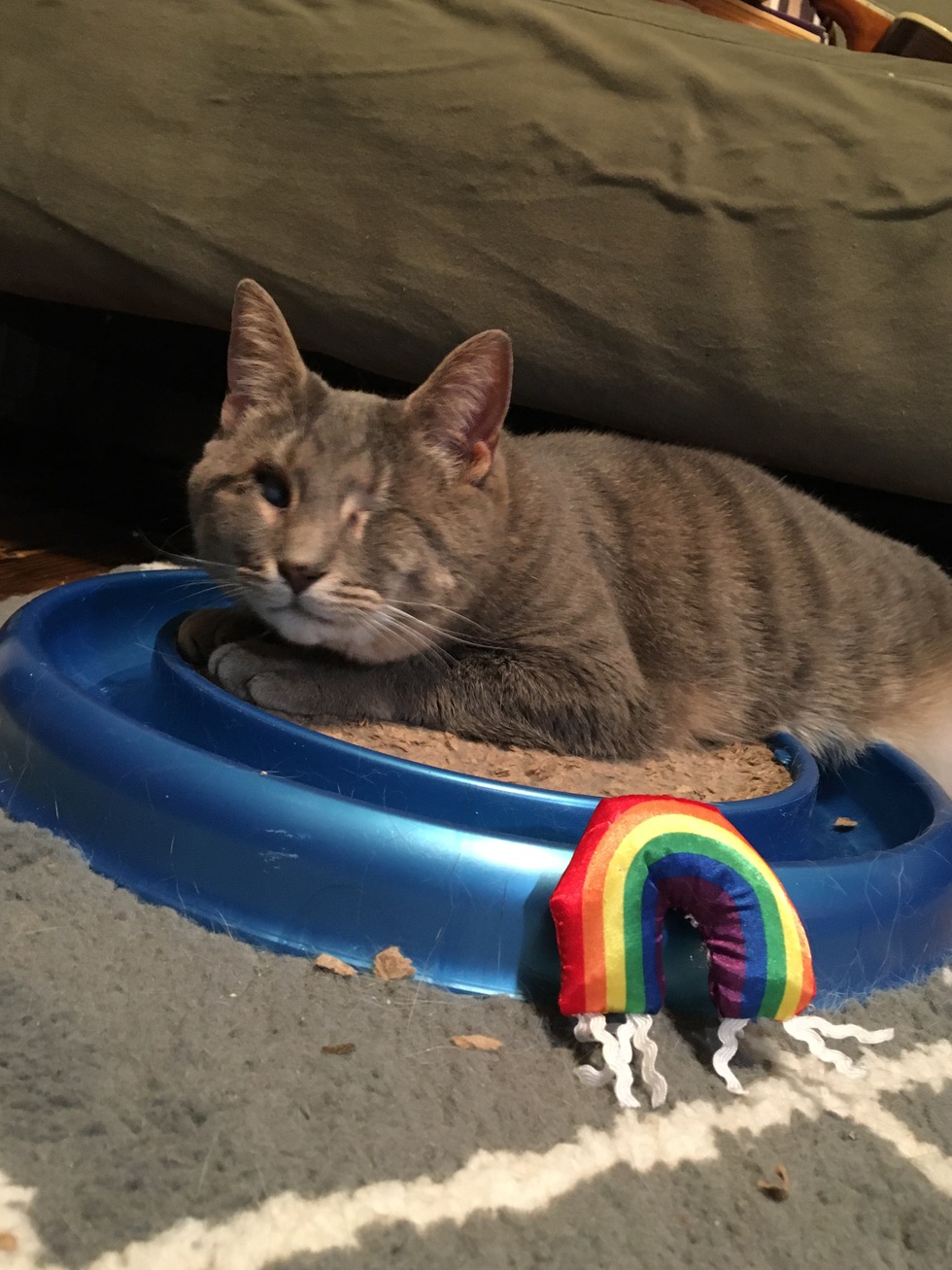 Freesia was adopted into her fur-ever home after being loved and cared for by an amazing Castaway Critters’ foster mom. She only has one eye, with very poor vision. Her Mamas give her oodles and noodles of love, which brought about her nickname, Noodle girl. Despite her initial shyness, Freezy will spend hours with you, as long as she’s getting attention and belly rubs!