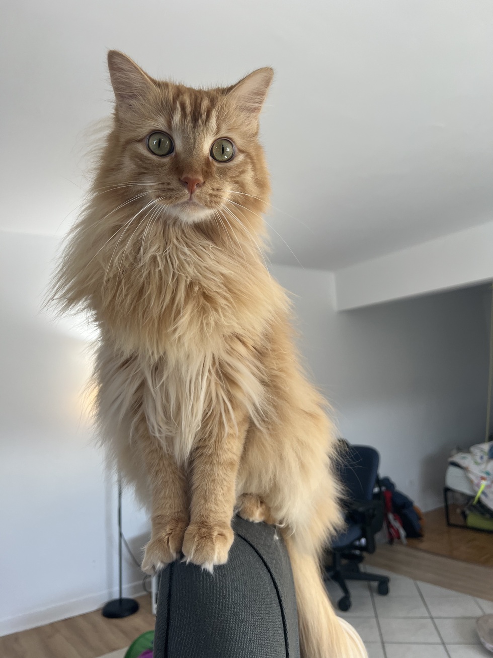 Hello everyone! My name is Pumpkin. By the middle of this October, it will be the 2nd anniversary of me finding my furever home and fameowily. I was rescued when I was a baby, so I don't think I had chance to learn how to make biscuits. But I can do hi-five and give my paws...only if you have my treats in your hands! My favorite word is pigeon, so as soon as I hear the word, I dash to the window to watch them! Recently, one pigeon started staying at the balcony during the night, so I've been a bit busy to talk with her lately.