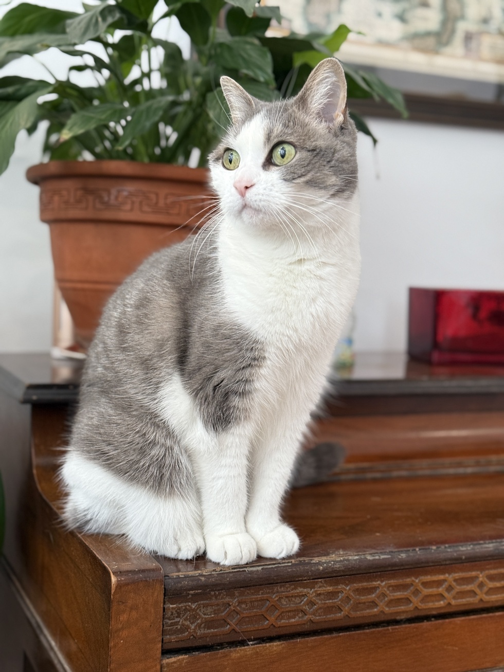 Iris, now in her fourteenth year, carries her crown with serene poise. Though age has brought whispers of frailty — a restless thyroid, weary joints — her spirit remains unbowed. She tolerates no feline pretenders, yet her kindness to humans is boundless, her purr deep and steady, like the hum of a well-loved kingdom at peace.