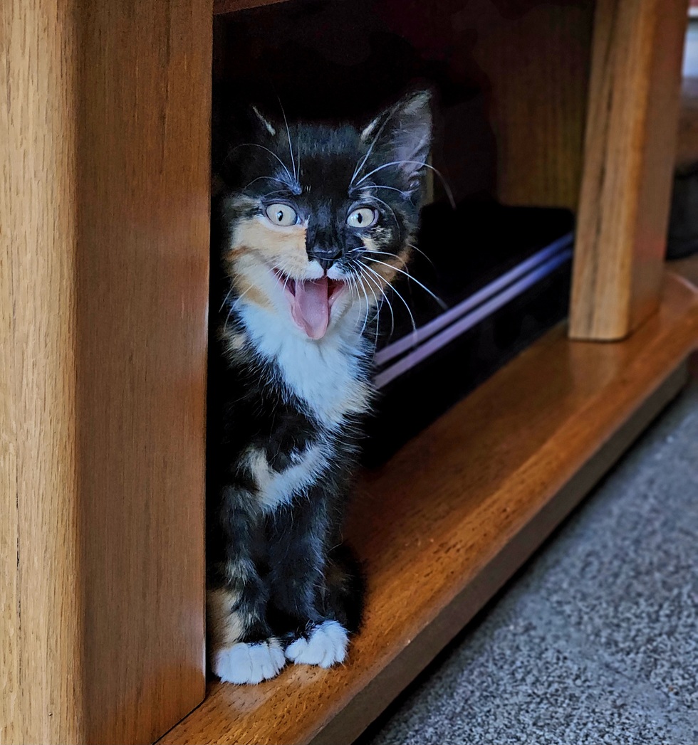 Cameo is one of seven kittens that I fostered along with their mom. Right from the start, she was super social and full of personality! It didn't take long for her future family to take notice, and she is now in her forever home, spreading joy and keeping everyone entertained.