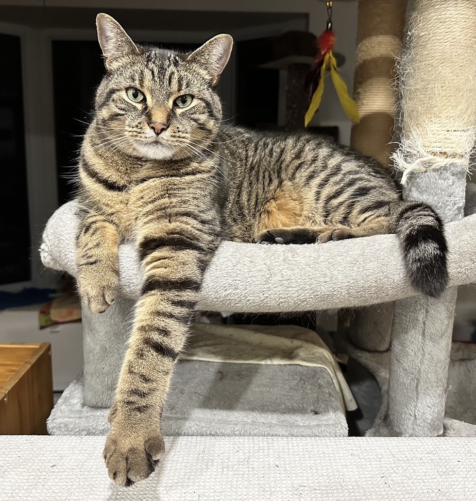 In the picture, you'll find more than a cat; you'll find Tigi. His eyes hold a different story in every photograph, a testament to his expressive and photogenic soul. Adopted from the SPCA, this six-year-old gentleman communicates not with confrontation, but with gentle chirps and marathon "chats." He is a creature of joyful habit, a faithful timekeeper for walks, couch cuddles, and treat time. Watch for the elegant arc of his long legs as he leaps, but know that his greatest power is his unwavering, gentle love—an absolute joy that fills every corner of his home.